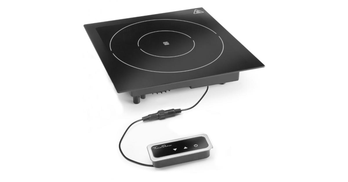 Vestavná indukční deska. Topná plocha z černého křišťálového skla. Deseti kroková regulace výkonu, vybavená elektronickou ochranou proti přehřátí. Dotykový panel a LED displej. délka 350 mm šířka/hloubka 350 mm příkon 1 kW napájení: elektrické napětí: 230 V