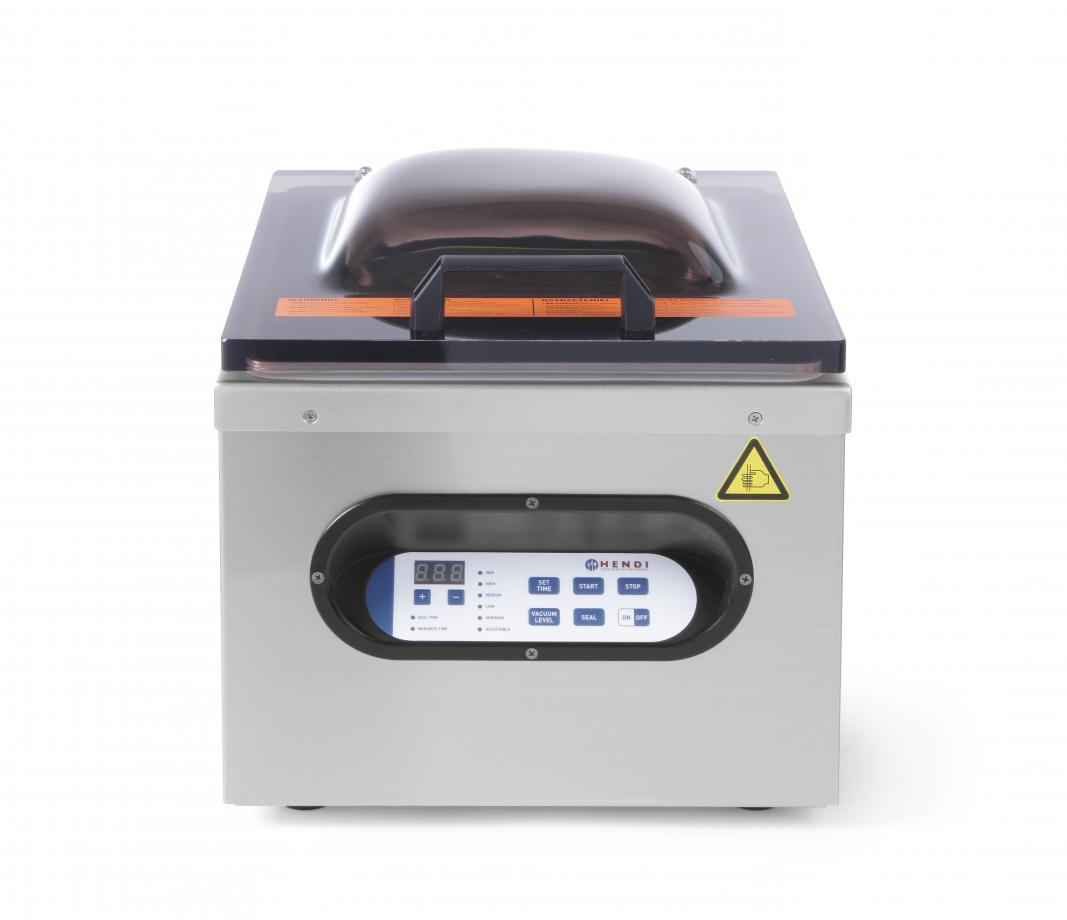 295 mm dlouhá těsnicí lišta, šířka 3,5 mm Tělo a komora z vysoce kvalitní nerezové oceli. Transparentní ABS kryt umožňuje kontrolovat proces vakuování. Pro profesionální užití Regulovatelný čas procesu vakuování a těsnění. Digitální displej zobrazující stupeň vakuování. Výkon: 77 litrů/ min. Rozměry komory: 350×300×(v)110 mm Hmotnost: 24,4 kg