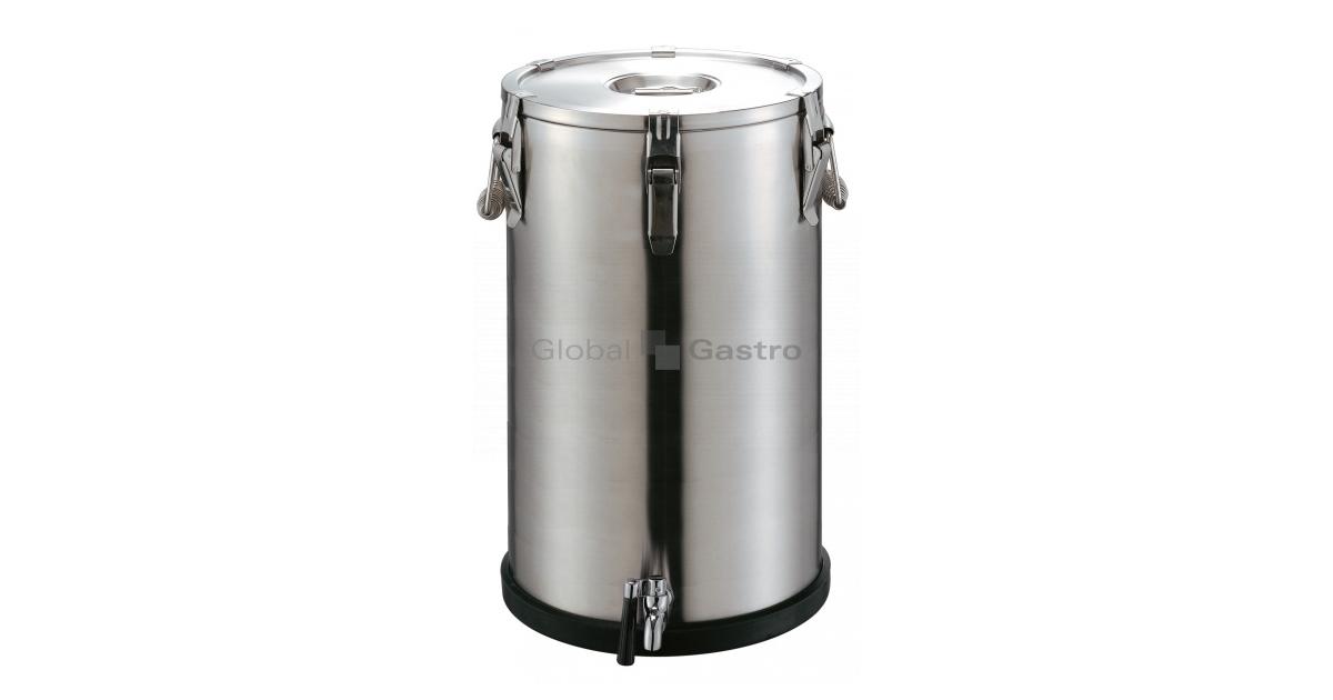- dvouplášťové, izolované celonerezové provedení s výdejním kohoutem (gumový návlek, možnost uzamčení víka)