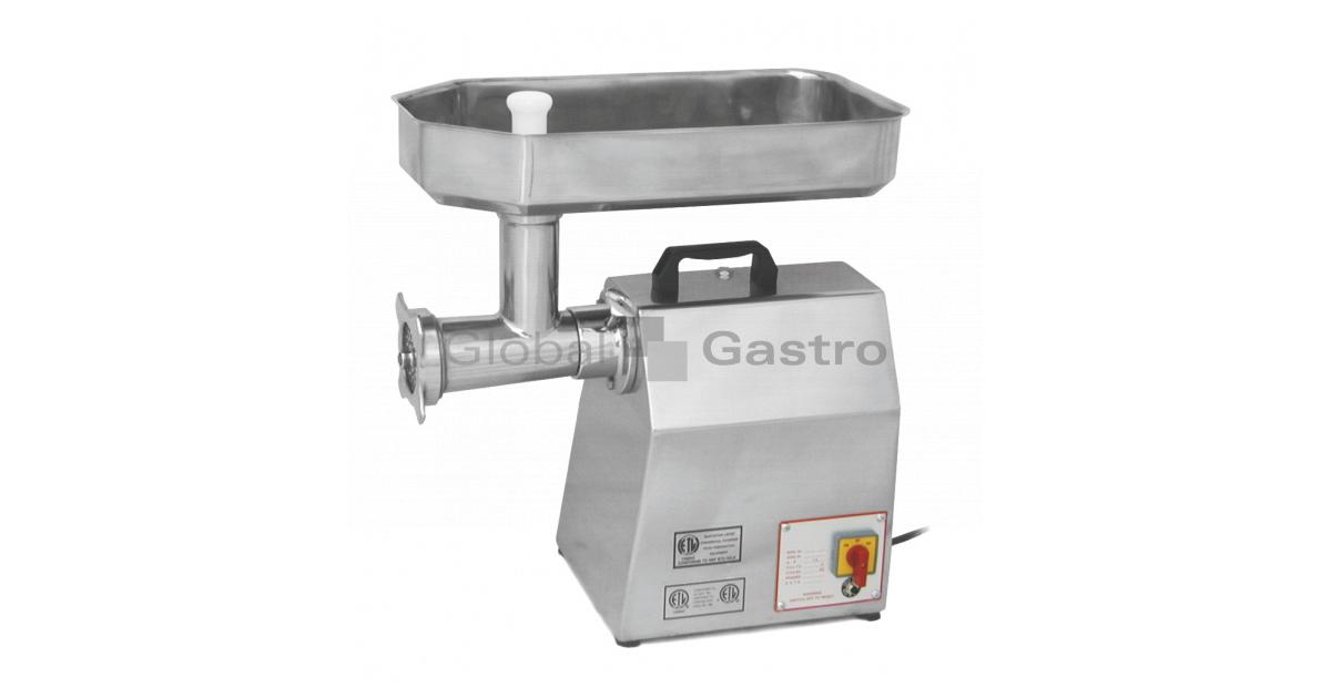 Řezačka masa pro využití v gastronomii a obchodě. Celonerezové provedení a vysoký hygienický standard. Vypínač se zpětným chodem. Robustní šneková převodovka pro těžký provoz.