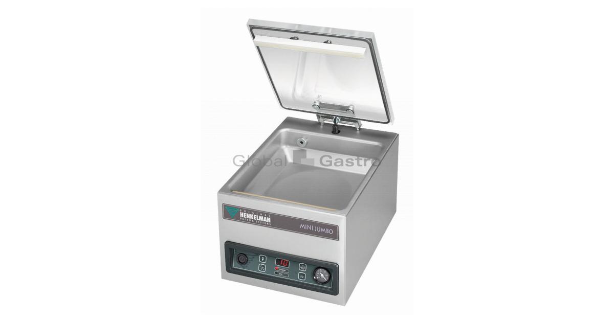 Prodlužte trvanlivost masa, drůbeže, ryb, sýrů, zeleniny a dalších potravin včetně tekutin. Ochraňte je před působením vnějších vlivů. S výkonnou, profesionální a spolehlivou jednokomorovou vakuovou baličkou MINI Jumbo od holandské firmy Henkelman to půjde snadno. Vakuová komora se zaoblenými rohy má délku komory 310 mm, šířku lišty 280 mm (max. šířka sáčku) a výšku komory 85 mm a dokonale uchová trvanlivost produktů.