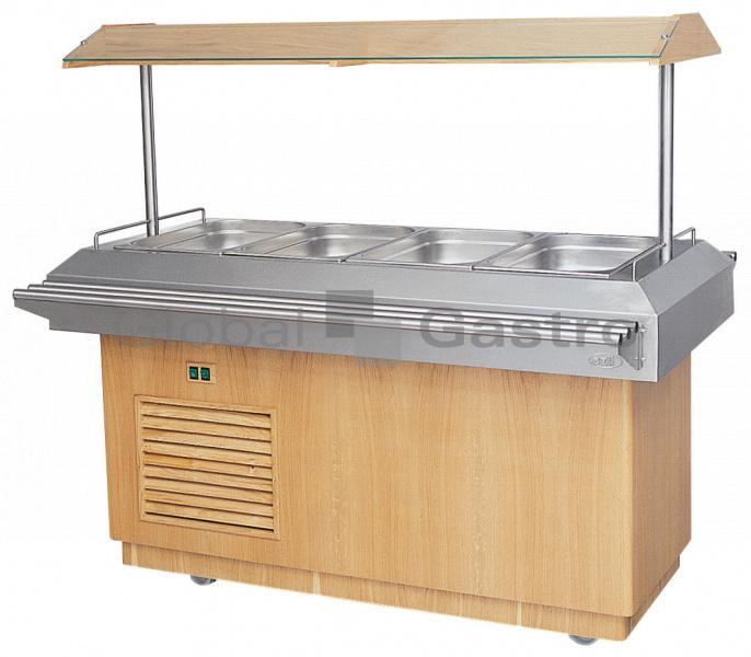 Chladící salátové bary slouží k uchování, prezentaci, a výdeji (samoobslužnému, obslužnému) připravených pokrmů. Nerezová lisovaná vana (snadná údržba a hygiena)umožňuje vkládat a kombinovat GN nádoby v rozměru 4× GN1/1 a menších s hloubkou do 150 mm. Díky pojízdnému provedení není problém tyto vozíky umístit kdekoli ve vašem provozu s možností využití dvou postranních nerezových odkládacích polic (možno sklopit, nebo zcela odebrat). Salátové vozíky jsou provedeny v imitaci ušlechtilého dřeva (O-dub a W-ořech) a nerezu. Teplota je řízena elektromechanickým termostatem umožňujícím nastavit teplotu od +2°C do +7°C (agregát Aspera – statické chlazení). Vozíky jsou vybaveny osvětlovací rampou.