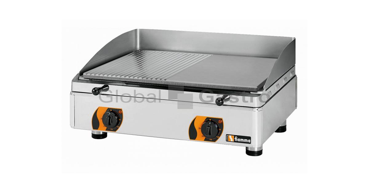 Celonerezové provedení, odkapová miska, kontaktní plochy – zesílená 15mm hladká ocelová grilovací deska s velkou akumulační schopností. Snadné mechanické ovládání. M = dělená gril.deska (hladká/vroubkatá).