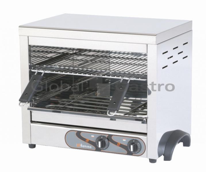 Model SEF 450 I - v celonerezovém provedení s přídavným regulovatelným spodním ohřevem, odpadní miska, nerezový rošt s plastovými madly možnost nastavení výkonu a signalizace chodu