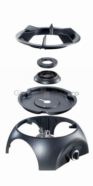 - Po odborné přestavbě provedení WOK : s výkonným hořákem vytvářejícím specifický vertikální plamen směřující výkon na střed pánve optimální pro čínskou kuchyni. Vybaven speciálnì tvarovaným litinovým kruhovým držákem pro pánve wok s oblým dnem.