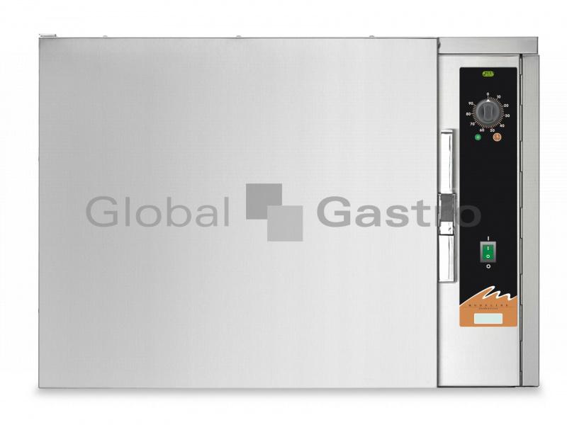 Jednoduché, ale výkonné zařízení RB-105H určené pro tepelnou regeneraci připravených pokrmů v GN nádobách,popřípadě na talířích, nebo miskách. Zařízení je vybaveno snadným elektromechanickým ovládáním (panel H) umožňujícínastavení přesného času regenerace a signalizující provoznístav. Teplota regenerace je nastavena na pevných 140°C(standardní regenerace). Zařízení jsou vyrobena z kvalitnínerezové oceli 18/10 AISI 304, komora se zaoblenými rohy prosnadné čištění, vyjímatelné zásuvy pro GN, automatické blokování ventilátoru při otevřených dveřích, ventilátory s periodickou změnou směru chodu pro lepší rozložení vzduchuuvnitř komory, komora s kvalitní tepelnou izolací, snadno vyjímatelná a odolná těsnění, masivní rukojeť dveří.