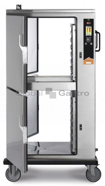 Model RC-156 (průchozí) umožňuje pokrmy dopřipravovat, regenerovat, udržovat a transportovat v teplém stavu při teplotě +65°C. Modely mají zvonkový mechanizmus, který je aktivován přiregeneraci (dosažení provozní teploty) a přechodu do fázeudržování v teplém stavu. Skříně jsou vybaveny zásobníkem vody pro zajištění mobility a optimálního klima uvnitř komory, dále systémem odvlhčení komory a zásobníky na kondenzát. K ohřevu jsou použity výkonné topnice, optimální proudění a rozložení horkého vzduchu v komoře je zajištěno výkonnými reverzními ventilátory. Zařízení jsou v celonerezovém hygienickém provedení včetně komory s oblými rohy. Cena obsahuje vnitřní zásuvy GN s roztečí 70mm.