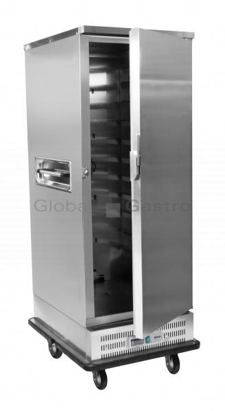 Chladící banketový vozík v hygienickém celonerezovém izolovaném dvouplášťovém provedení.