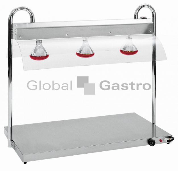 Robustní provedení s infračervenou lampou a ochraným/hygienickým bezpečnostním zákrytem. Dvě nezávislá ovládání (samostatné pro lampu a vyhřívací desku).