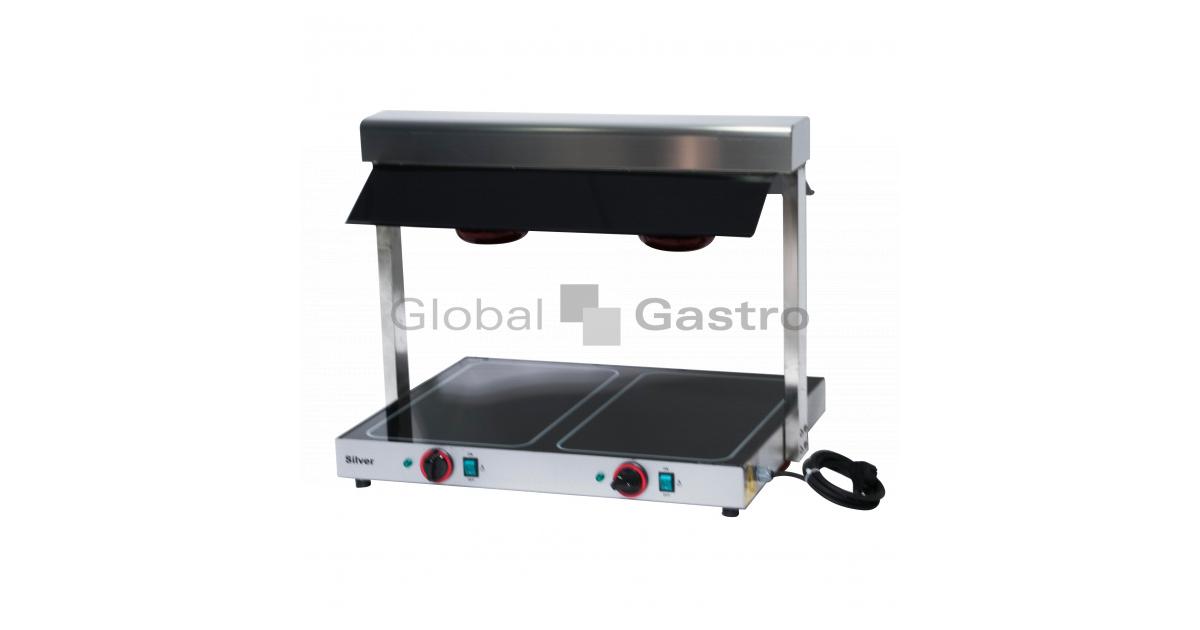 Infra rampa se sklokeramickou udržovací deskou. Provedení nerezové s polykrbonátovým tmavým zákrytem infra ohřevné rampy (2× lampa á150W). Ovládání mechanické pro sklokeramickou ohřevnou desku (levá/pravá strana) + zapnutí/vypnutí jednotlivých infra lamp. + kontrolka chodu.