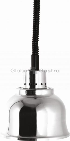 Závěsná lampa v provedení chrom. Ideální do prodejních prostor. S infra lampou nasvítíte pokrmy a udržíte je déle teplé. Atraktivní vzhled nasvícených produktů, ideální pro přímý prodej pokrmů TO-GO jako například pizza, masové pokrmy nebo i pasta.