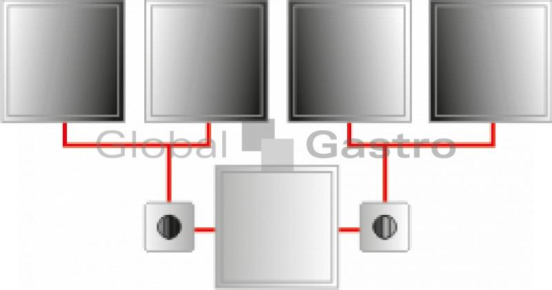 Indukční vestavné udržovací zóny Scholl v rozměru 2/3 (322×322 mm) nebo 1/1 (520×320 mm) pro hliníkové nebo porcelánové nádobí určené k indukčnímu ohřevu (široký výběr nádobí Scholl včetně chafingů s keramickými vložkami na poptávku). Zařízení jsou dodávána v sestavě s generátorem, indukční sklokeramickou zónou (1, 2, 3, 4) a snadným elektromechanickým ovládáním výkonu (50 až 100°C pro jednu nebo dvě zóny).Součástí dodávky zařízení je síťový kabel a propojovací kabel regulátoru.