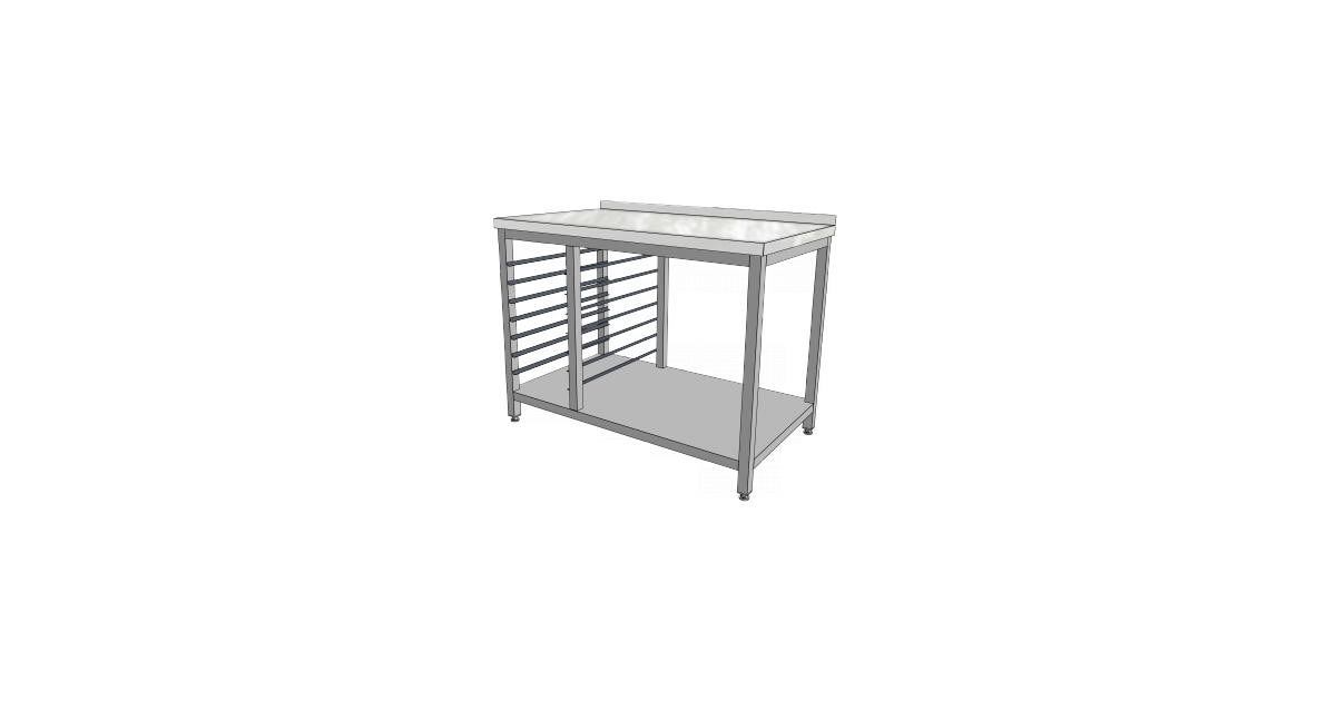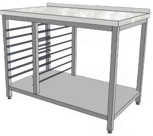 Celonerezové provedení, výšková stavitelnost o 30 mm. Provedení bez lemů, zadní nebo bočni lemy výšky 40 mm. Tl. pracovní desky a police 40 mm. Světlost police s podélnými výztuhami 105 mm. Držák se vsuny na GN nebo tácy vpravo nebo vlevo.