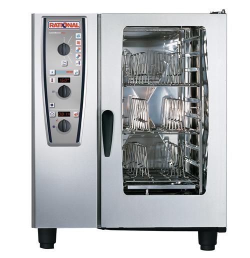 - S 5 provozními režimy: horký vzduch, pára, kombinace, vario-pára a Finishing® je Vám k dispozici neomezená různorodost přípravy RATIONAL CombiMaster.