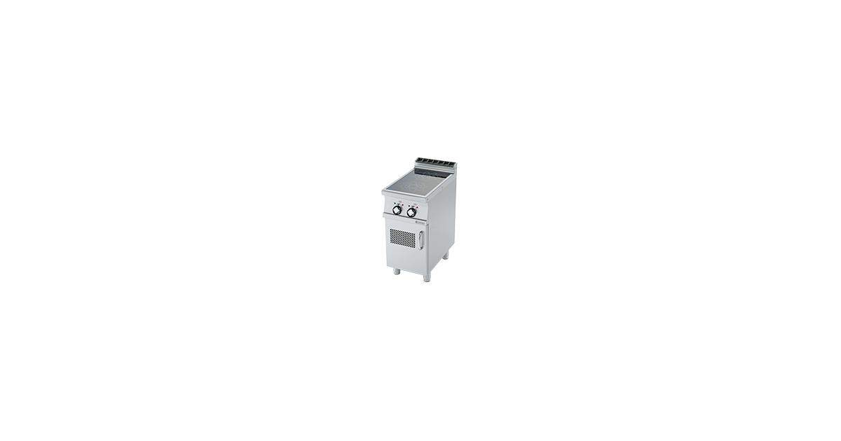 horní deska z oceli AISI 304 o síle 2 mm ■ prolisovaná vrchní deska umožňuje komfortní údržbu a čištění ■ celonerezové provedení ■ 2× plotna 5 kW 350 × 570 mm • kontaktní sklokeramická deska – předává energii přímo do pokrmu ■ 6-ti stupňová regulace výkonu • stupeň krytí ovládacích prvků IPX5 • všechny servisovatelné části jsou snadno přístupné odejmutím čelního panelu a nádob na odpadní tekutiny Informace Šířka 400.00 mm Hloubka 705.00 mm Výška 900.00 mm Objem 253800.00 cc Hmotnost 30.00 kg