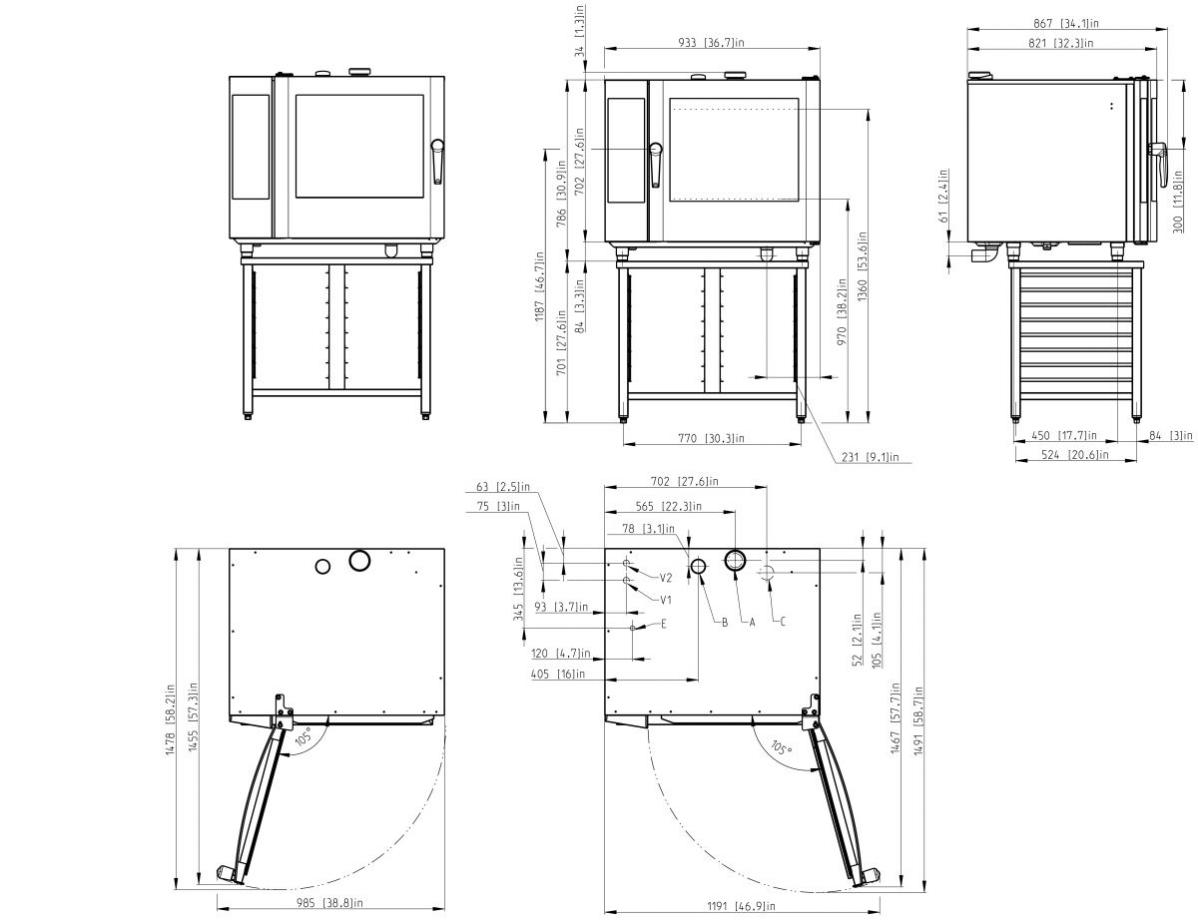 OSTATNÍ VYBAVENÍ Active Cleaning – systém automatického mytí s minimální spotřebou vody Trojité dveřní sklo – minimální únik tepla, nízká spotřeba energie, již žádné popálení o vnější sklo Obousměrný ventilátor – minimální rozdíly v barvě upečených jídel Klapka – rychlé odvlhčení varné komory pro lepší křupavost a krásnou barvu, patentovaný odvlhčovací systém 7 rychlostí ventilátoru – kontrola rychlosti distribuce a cirkulace vzduchu Fan Stop – okamžité zastavení ventilátoru brání úniku tepla a páry při otevření dveří a zabraňuje opaření obsluhy Taktování ventilátoru – 3 kroky k lepší rovnoměrnosti Robustní klika – pro pohodlné otvírání stroje, antibakteriální materiál AISI 304 nerezová ocel – kvalitní nerezové materiály se speciální povrchovou úpravou pro delší životnost Hygienický varný prostor se zaoblenými vnitřními rohy – snadná údržba Integrovaná ruční sprcha – pro snadné čištění, nespotřebovává změkčenou vodu Odkapová dveřní vanička – zachytává kondenzát z dveří Dva přívody vody – pro změkčenou a nezměkčenou vodu WSS (Water Saving System) – speciální systém odpadu & vestavěný tepelný výměník zajistí velmi nízkou spotřebu vody Vyjímatelné držáky gastronádob s roztečí 65 mm
